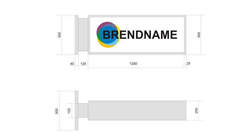 Изготовление и монтаж рекламного короба с торцевым креплением. Рекламное изображение может быть любым, разрабатывается по требованиям заказчика.