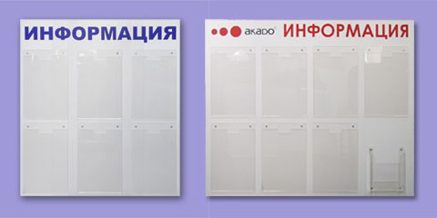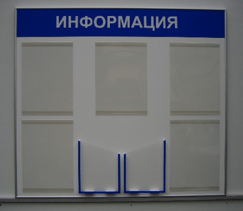 Изготовление информационного стена: 3 кармана для А4 формата, 1 карман А3 формата, основа ПВХ с аппликацией пленкой, декоративная надпись из молочного акрила, обрамление багетным профилем, система крепления вплотную к стене. Мы принимаем заказы на любые модификации аналогичного стенда. Например, вы можете выбрать: размеры основы и количество карманов, определить цвет фона или заказать рисунок, все зависит от ваших требований. Стоимость на любые модификации определяется индивидуально.
