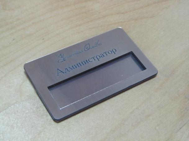 Любые конфигурации бейджей на заказ. Цвет двухслойного пластика ограничен каталогом.