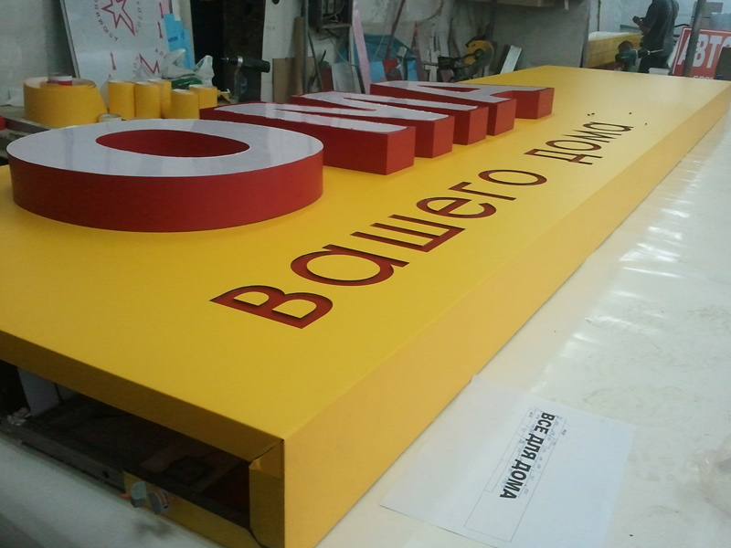 Изготовление объемного короба толщиной 100 - 250 мм. Несущий металлический каркас из профильной трубы 20х20 мм. Обшивка алюминиевым композитом 3 мм (цвет на выбор).