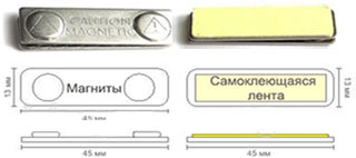 С помощью самоклеющейся поверхности прикрепляет магнитное крепление к бейджу.