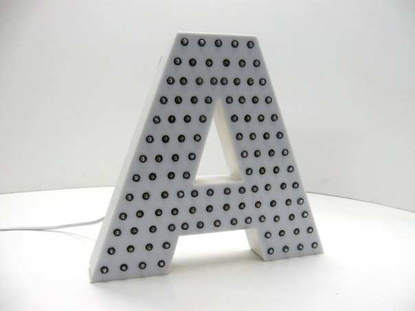 Объемные короба сложной формы. Лицевая, боковая и задняя плоскость алюминиевый композит, аппликация пленкой ПВХ. Инкрустация светодиодных пикселей по всей лицевой плоскости объемной буквы. Контроллер, блоки питания, коммутация проводов, сборка, упаковка, монтаж.