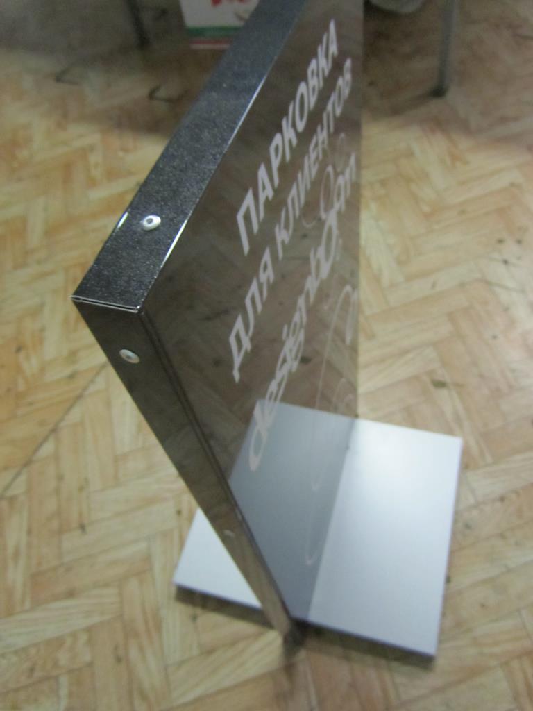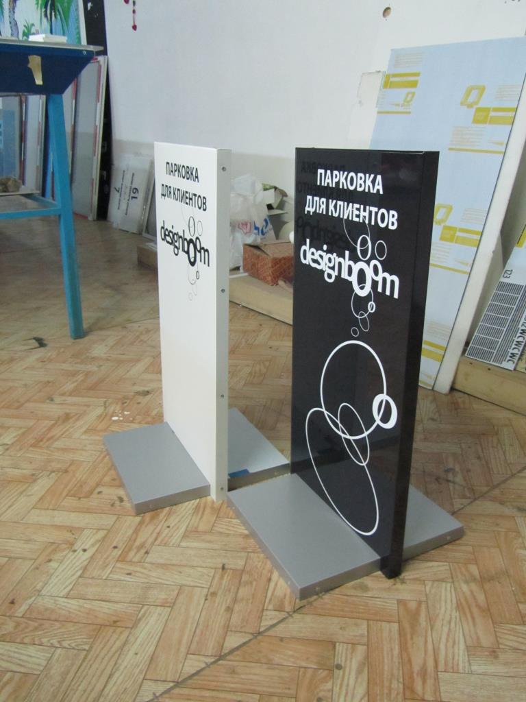 Изготовление стойки (цвет материала и изображение может быть любым). Металлокаркас, обшивка композитом, опора (цвет серый), изображение - фон полноцветная печать, текст пленка Oracal 641.